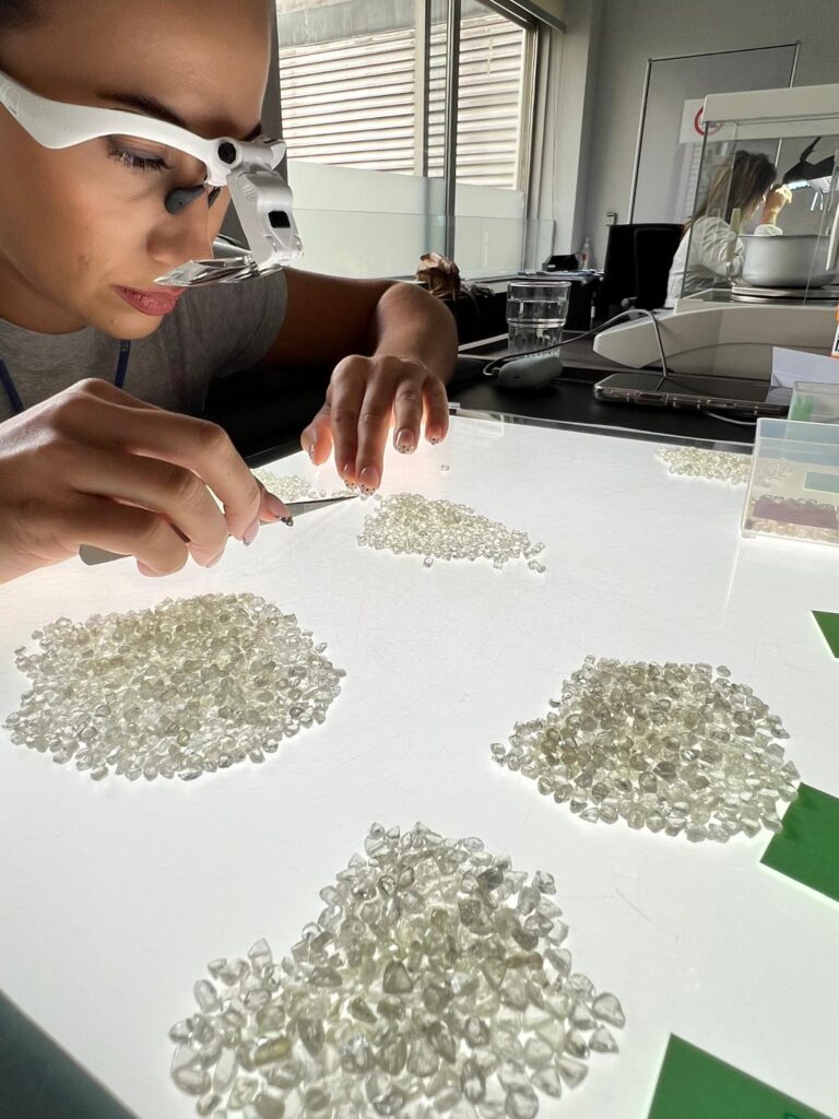 Beyond the large viewing capacity, the numbers are equally impressive: 191 cameras oversee the security of the auctions, 8 bailiffs will be engaged, up to 2,000 weight-checks are carried out each day to ensure not a single stone is left behind after viewings, 13,000 bids are expected on the 900 parcels in total, and 850,000 carats of rough diamonds (equivalent to 170 kg) will be put up for sale, with an estimated total value of USD 90 million. The rough diamonds being auctioned originate from Botswana, Canada, Lesotho, Brazil, Tanzania, Namibia, and Angola.