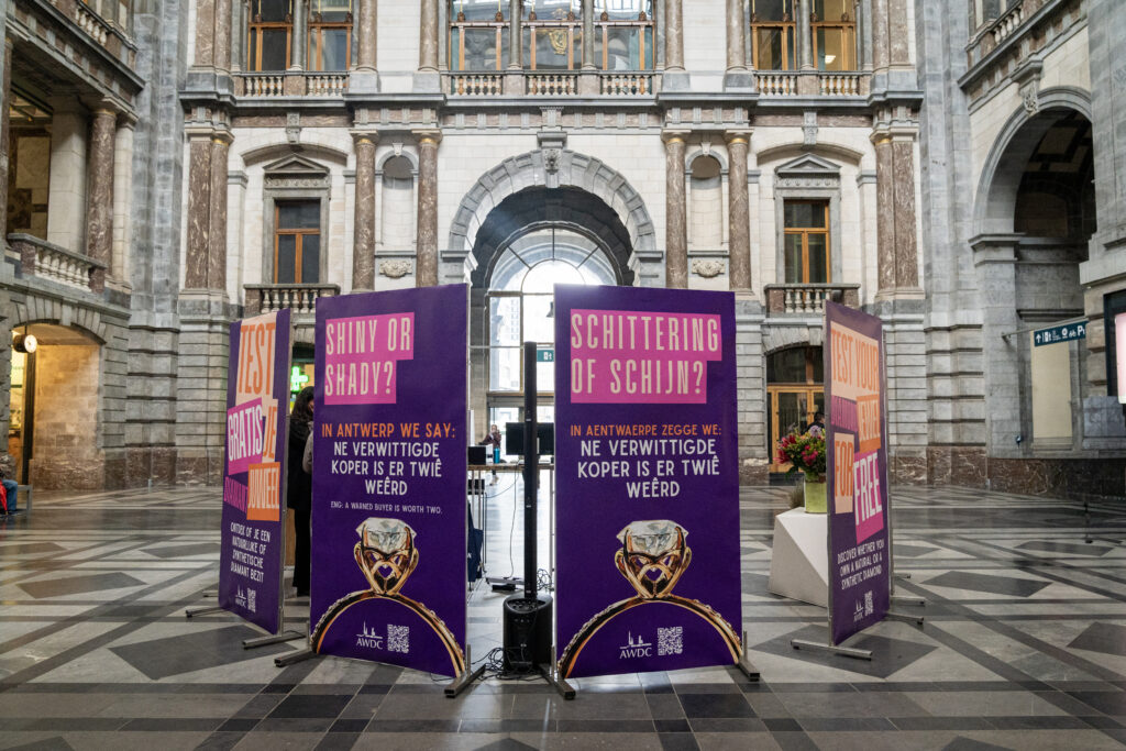 Antwerp: During a public event today at Antwerpen-Centraal railway station, the diamond industry body Antwerp World Diamond Centre (AWDC) raised awareness among passers-by about the