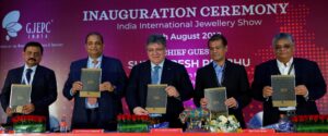 Mumbai: Mr. Suresh Prabhu, Union Minister for Commerce & Industry & Civil Aviation through a tele-video address, along with Mr. Gaetano Cavalieri, President of CIBJO, Mr. Pramod Agrawal (Chairman, GJEPC), Mr. Colin Shah Vice Chairman, GJEPC), Shri Shailesh Sangani,(Convener, National Exhibitions GJEPC) Mr. Sabyasachi Ray (ED, GJEPC) , today inaugurated the prestigious 35th edition of the India International Jewellery Show (IIJS). Organised by