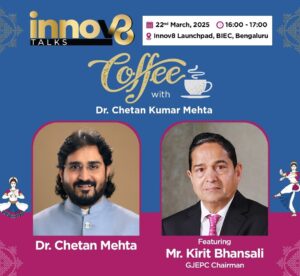 Bengaluru: The latest edition of Coffee with Dr. Chetan Kumar Mehta featured an engaging conversation between Dr. Chetan Mehta, President of the Jewellers Association Bangalore, and Mr. Kirit Bhansali, Chairman of the Gem & Jewellery Export Promotion Council (GJEPC). Held during the IIJS Tritiya event, the discussion delved into Mr. Bhansali’s inspiring journey, his vision for the jewellery industry, and