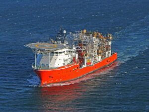 Windhoek: On Saturday 9, the De Beers Marine Namibia’s diamond sampling and exploration vessel Nujoma was launched from the slipway at Kleven Verft in Ulsteinvik, Norway. The first of its kind and highly specialized vessel for deep water mineral exploration will include a wide range of tailor made equipment and features. It is based on the MT 6022 design from