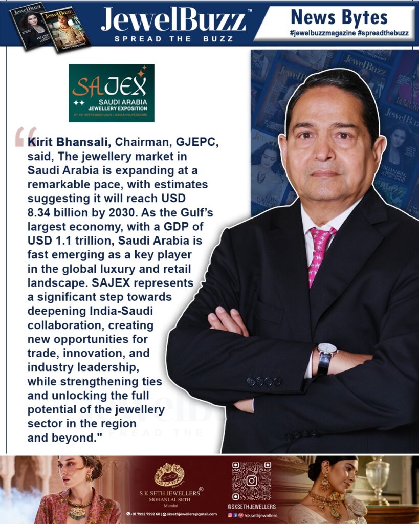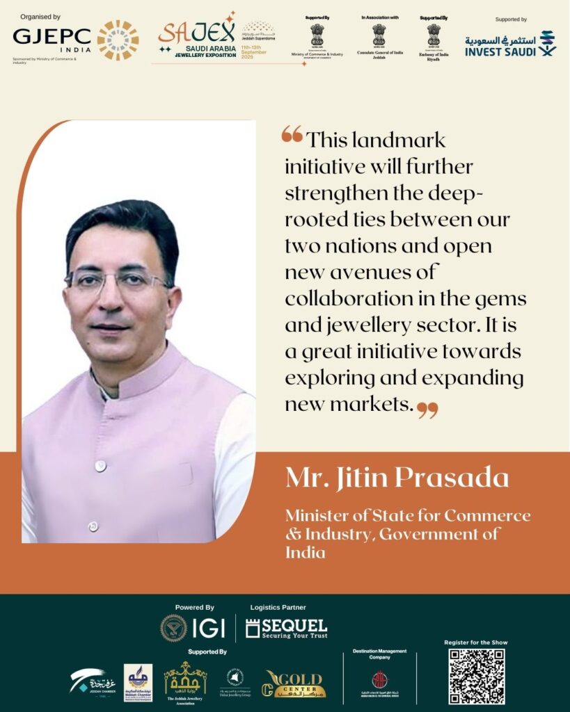 SAJEX 2025 reinforces India’s prominent role in the global gem and jewellery industry. With strong backing from the Ministry of Commerce and Industry, the Embassy of India in Riyadh, and support from Saudi Arabian government bodies, this event promises to reach new heights.